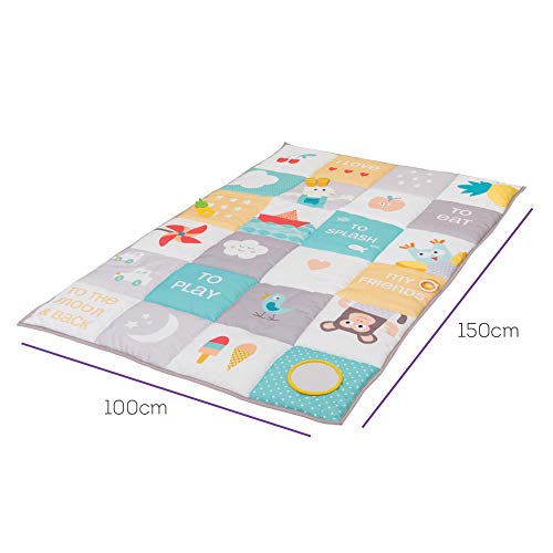 Taf Toys I Love Big Mat. Baby Activity Play Mat. 150 x 100cm. Soft Coloured & Thickly Padded Playmat. Foldable. With Teether, Crinkling parts & Baby-safe Mirror. Suitable for Boys & Girls from Birth