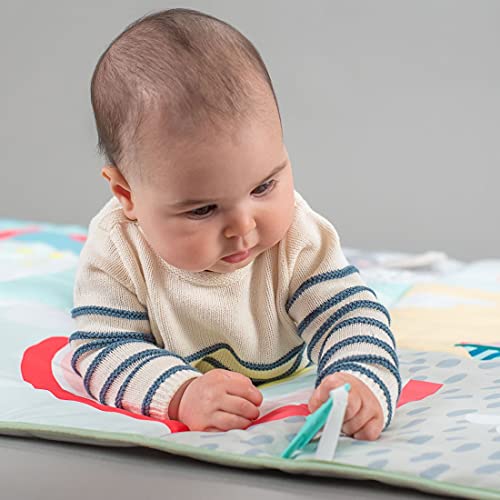 - CONVENIENT CARRY HANDLE AND EASY CLEAN FABRIC – The included bag with carry handle ensures you can easily store or transport your play mat, so your baby can enjoy their mat anywhere! The easy clean fabric ensures any stains wipe away easily.