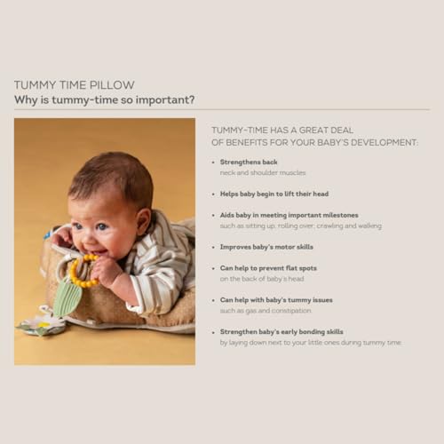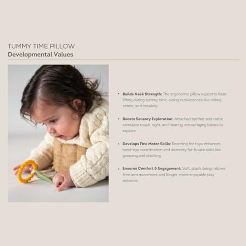 - INCLUDES DETACHABLE TEETHER AND SENSORY RATTLE – Keep your baby captivated during tummy time with the attached teether and rattle toys. These interactive tummy time toys stimulate sensory exploration and provide entertainment, allowing your child to develop essential motor skills in a fun, engaging manner. These playful toys encourage longer, more productive tummy time sessions, fostering a love for exploration from an early age.