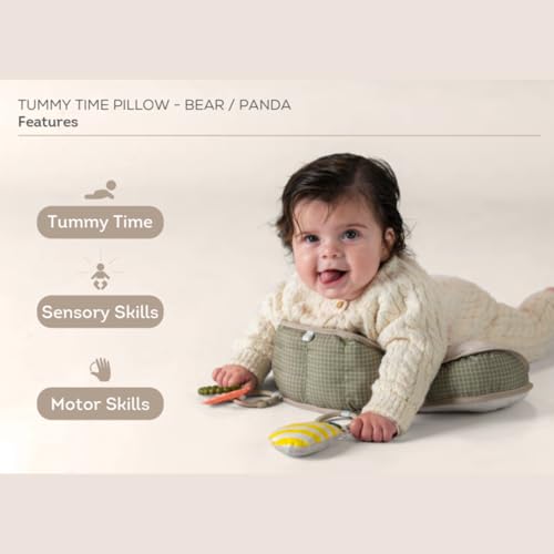 - TUMMY TIME SUPPORT PILLOW – Transform tummy time into a delightful experience with our tummy time toys cushions, designed to support your baby during this essential activity. With charming bear and panda illustrations, these cushions not only encourage head lifting and neck strengthening but also provide a cozy, soft space that makes tummy time both enjoyable and beneficial for your little one's growth.