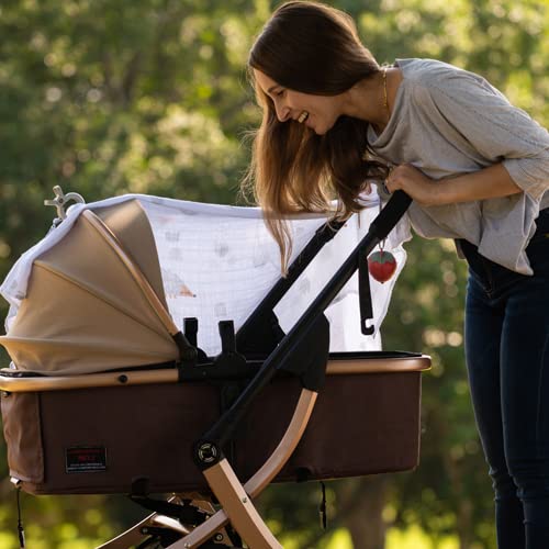 - WHAT'S INCLUDED – The kit includes a large swaddle to keep your little one cosy, a changing mat with handy internal storage pouch that can be folded into a convenient carry bag, a strawberry dummy case, a bunny rattle to keep your baby entertained, and a double-sided pram book for visual and tactile stimulation. This all-in-one travel set also includes 2 clips to easily attach the swaddle or toys to your pram.