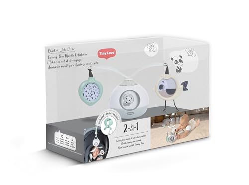 Tiny Love 2-in-1 Tummy Time Musical Mobile, 360° Rotating Baby Mobile with Music & Lights, 0+ Months, Portable Take-Along Stroller Mobile, Baby Musical Toy, 3 Music & Sound Modes, Black & White Déco