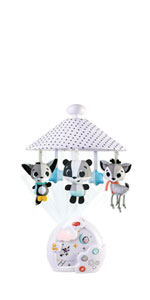Magical Night 3-in-1 Projector Mobile is a cot mobile, baby projector and night light in one, and plays charming melodies to comfort your baby at bedtime. The projection mobile plays up to 30 minutes of non-repetitive melodies (nine different tunes) and has a night light that projects elegant stars for a soothing, uninterrupted sleep.