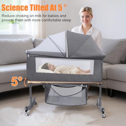 - 【Adjustable Height & Tilt Function】Designed with multiple height levels, the bassinet easily adapts to different bed heights for convenient co-sleeping. The unique tilt mode helps prevent choking and spit-up, promoting safer and more comfortable rest for your newborn.