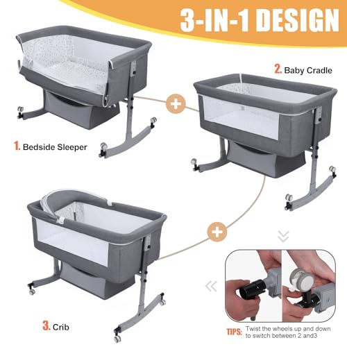 Tneukoom Bedside crib 3 in 1 Baby Crib, baby Cradle, toddler Bassinet, infant