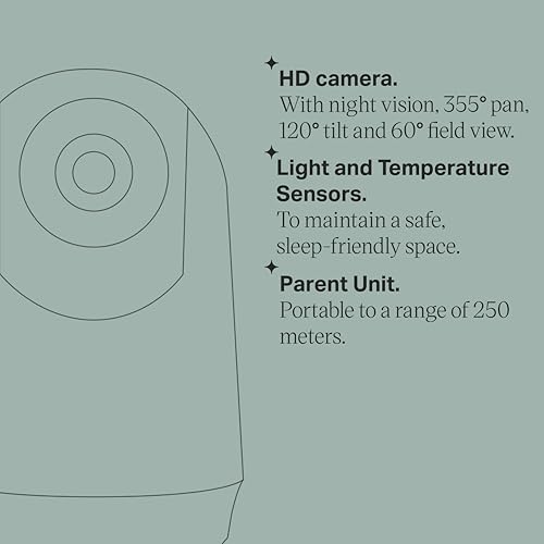 - HD pan and tilt night vision camera: Infrared camera with 355° horizontal pan, 120° vertical tilt, and a 60° field view for a clear, uninterrupted view of their sleep environment