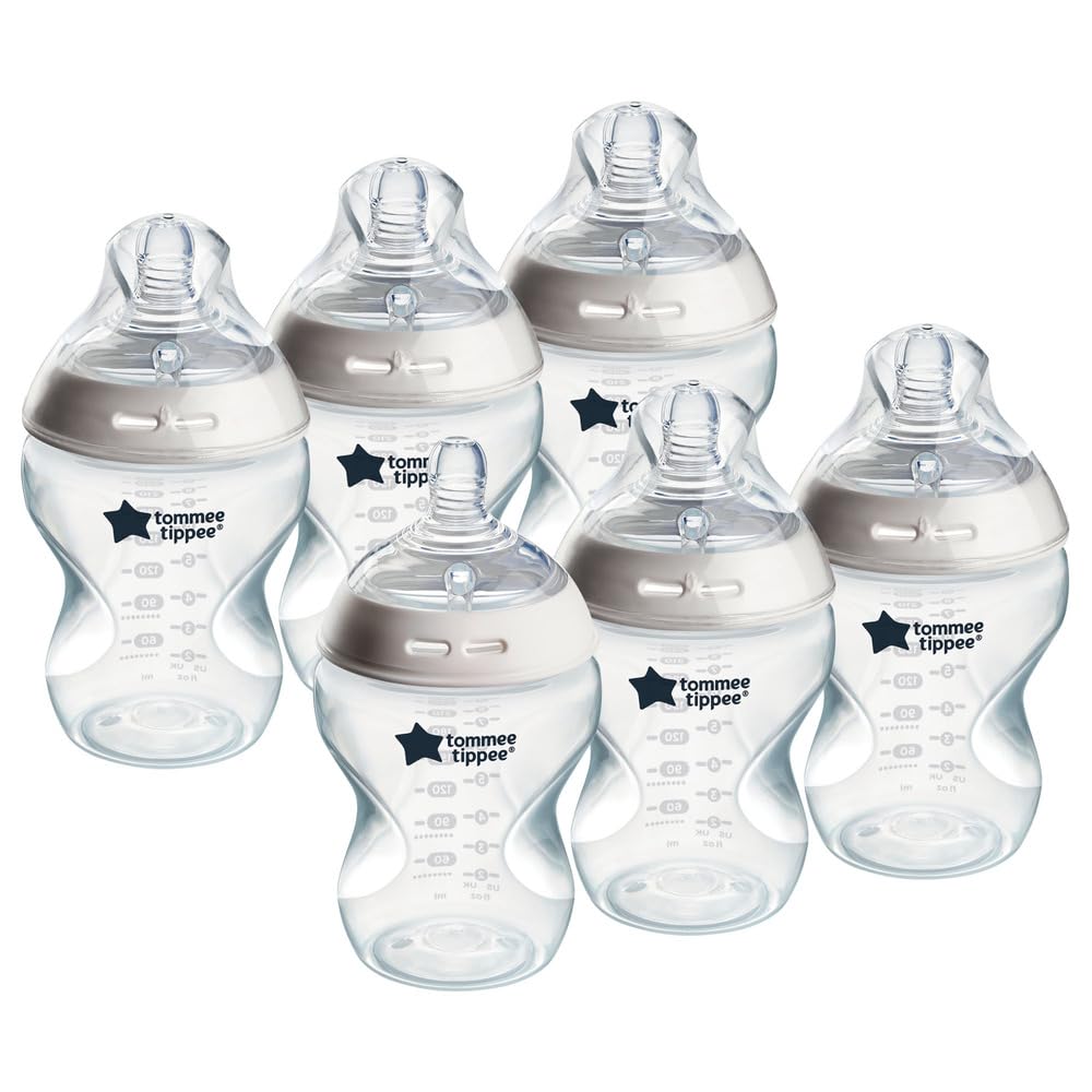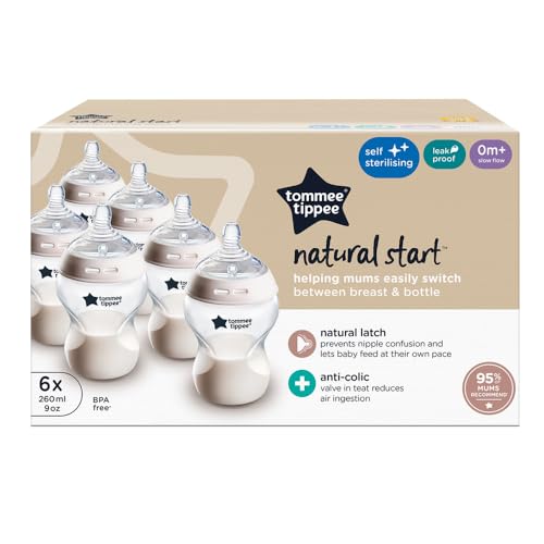 Tommee Tippee Natural Start Baby Bottles for 0m+, Pack of 6 260ml Baby Bottles, with Slow Flow Breast-Like Teat for a Natural Latch, Self-Sterilising and BPA Free, Baby Feeding Essentials