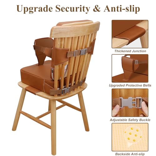 TOTIDYH Toddler Booster Seat for Dining Table – PU Waterproof Child Booster Seat for Kitchen Chair with Adjustable Straps Safety Buckle, Portable Travel Increasing Cushion Baby Booster Seat for Table