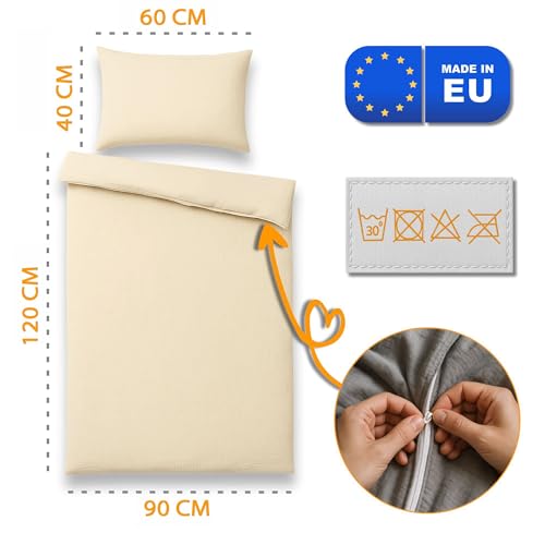 - [ROBUST QUALITY & HIGH DURABILITY] – Muslin baby bedding with extra strong, carefully crafted seams and a high-quality zipper for easy dressing. Our baby bedding retains its shape, size, and color brilliance even after numerous washes (at 30°C).