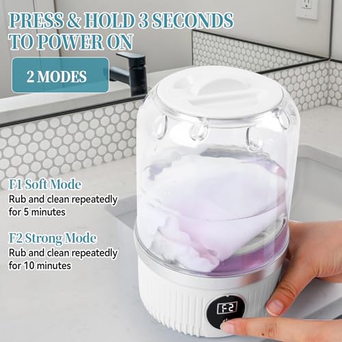 - Dual Modes for Custom Cleaning: Equipped with two wash modes (hand-wash simulation), F1: 5-minute quick clean for light dirt; F2: 10-minute powerful wash for stubborn stains. Ensuring quick yet gentle results