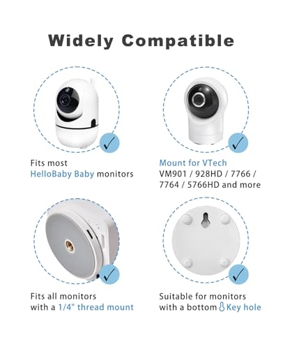 - 【HelloBaby Monitor Mount】 Designed for HelloBaby models including HB6550, HB6550Pro, HB6550-2, HB6081, HB6560, HB65, HB40, HB6339, HB6336, HB66, HB66Pro, HB6351, HB6148, HB248, and other baby monitor cameras with a 1/4" threaded mount