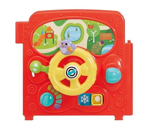 - ENGAGING DEVELOPMENTAL FEATURES: Includes a driving zone, shape sorter, peek-a-boo fun, turning gears, rollers, and a see-through window for stimulating sensory exploration.