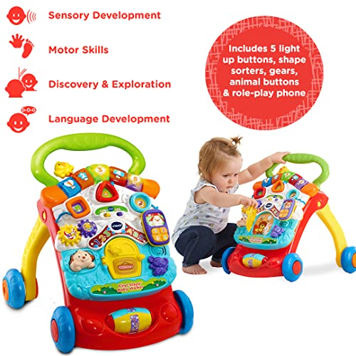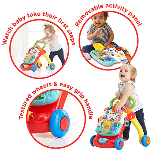 - IDEAL SUPPORT FOR YOUR BABIES' FIRST STEPS: Encourage your baby take their first steps, strengthen core, gain balance and learn loads with this 2-in-1 walker and activity centre from VTech!