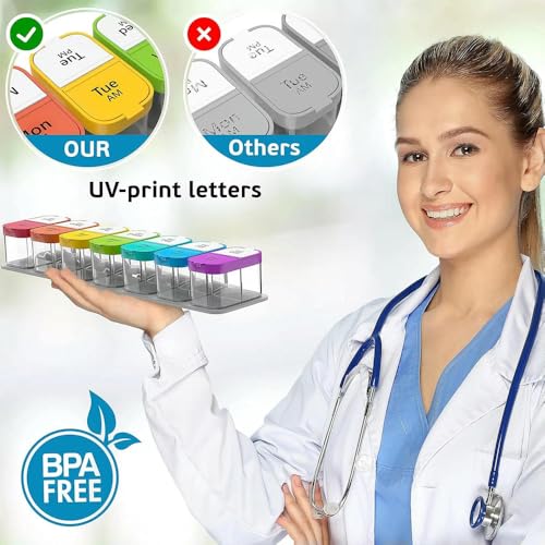 1.[ Easy to Use ] The am pm pill organizer 7 day is great easy to open and close for elderly kids or people who have arthritis.