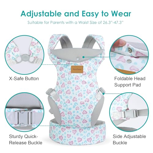 - Adjustable & Easy to Wear: These baby carriers are designed with an adjustable size, suitable for parents with a waist 26.3"-47.3"(67-120 cm). The sturdy quick-release buckle combined with the cross back “X” buckle makes it safe and easy to use. Suitable for babies from 7-66 lbs(3-36 months)