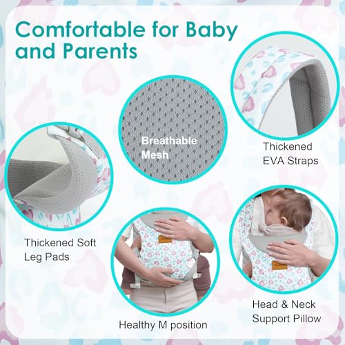 - Comfortable & Safe: This newborn carrier is made of high quality polyester fiber, soft and durable, the scientific carrier structure places baby's legs in the ergonomic natural "M” position to ensure the healthy development of baby's hips and spine.Soft legs protective pads and head support pads suitable for toddlers 1-3