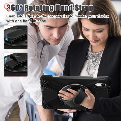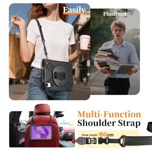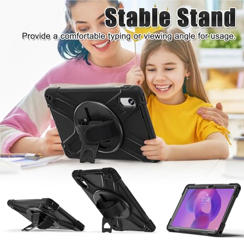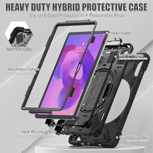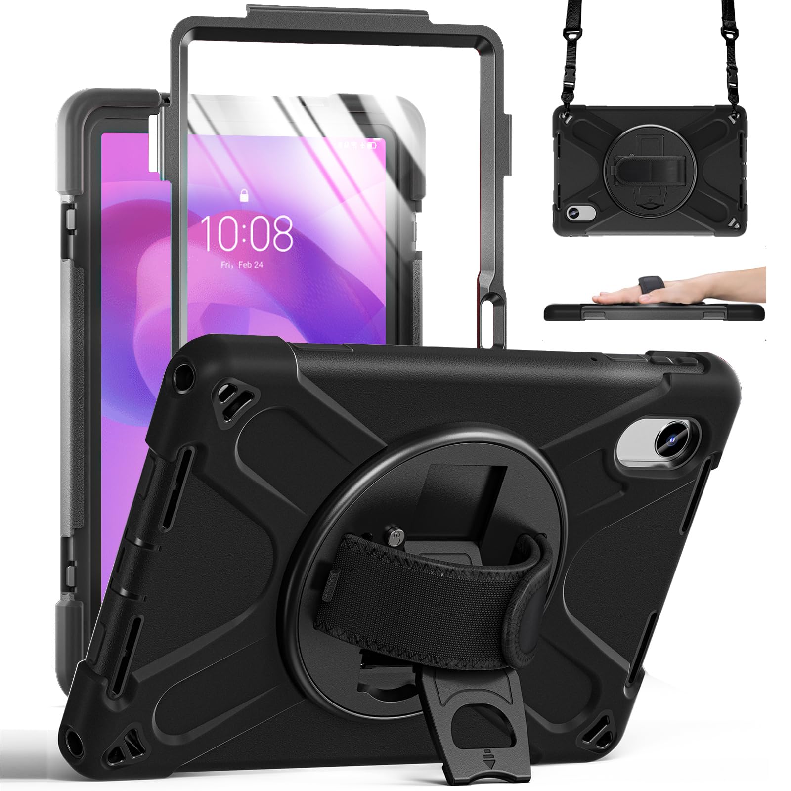 ZenRich Case for Lenovo Idea Tab 11 inch 2025 (TB-336ZU TB-336FU), Shockproof Rugged Protective Case With Screen Protector, 360 Rotating Stand, Hand Strap Pen Holder, Shoulder Strap, Black