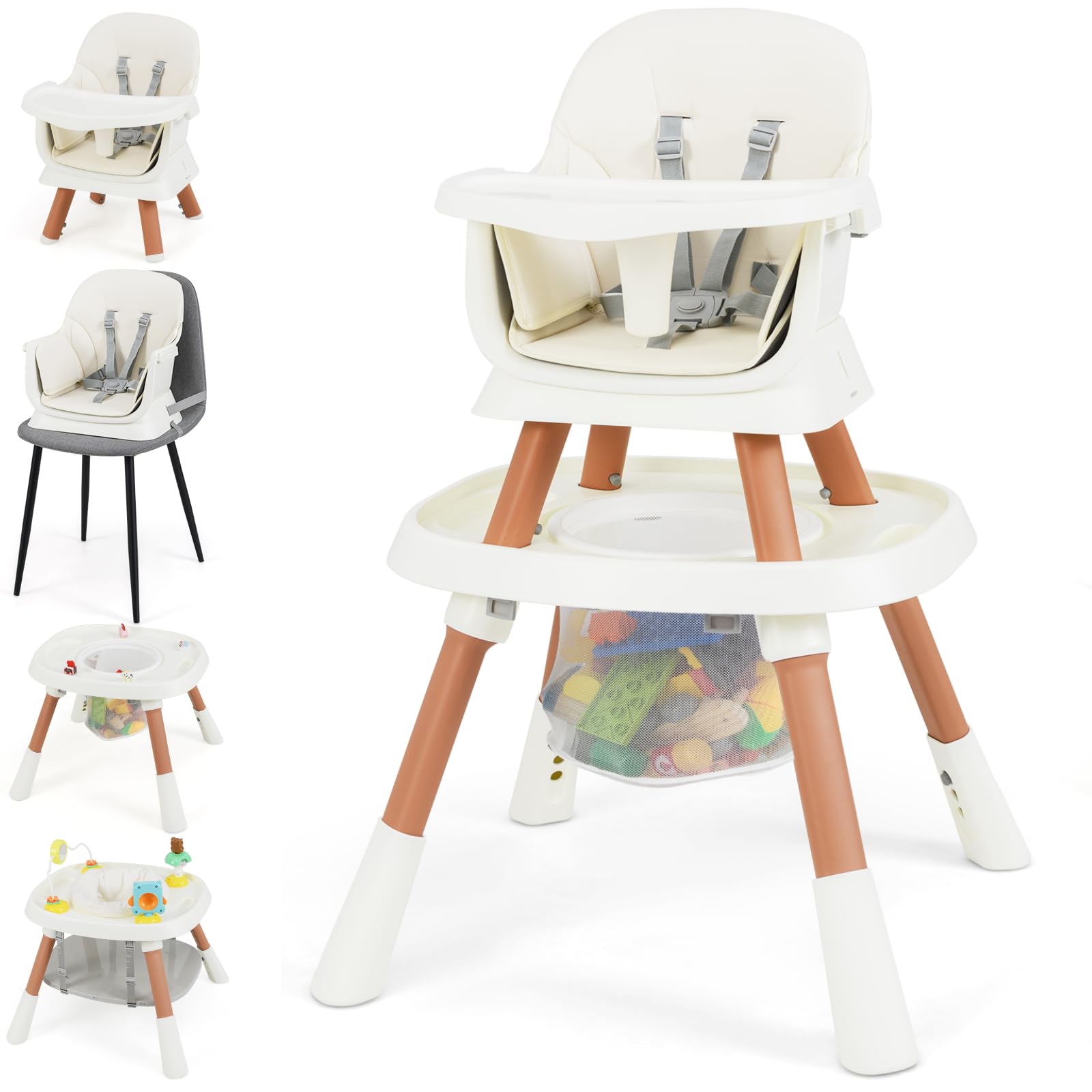 16 in 1 Baby Highchair, Convertible Infant Feeding Chair with Removable Tray and 5-Point Harness, Toddler Dining Chair for 6-36 Months (White + Natural)