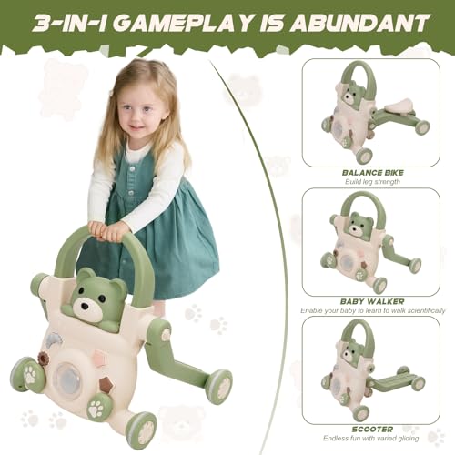 - Multi-functional Walker: This walker features three modes – scooter, pushcart, and ride-on – offering versatile play options for children