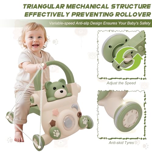 - Safety features: The decorative bear can be removed to add weighted pellets inside the frame, enhancing stability during learning to walk. The triangular base with four-point support ensures stability and prevents tipping, offering greater peace of mind for parents