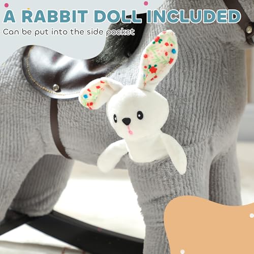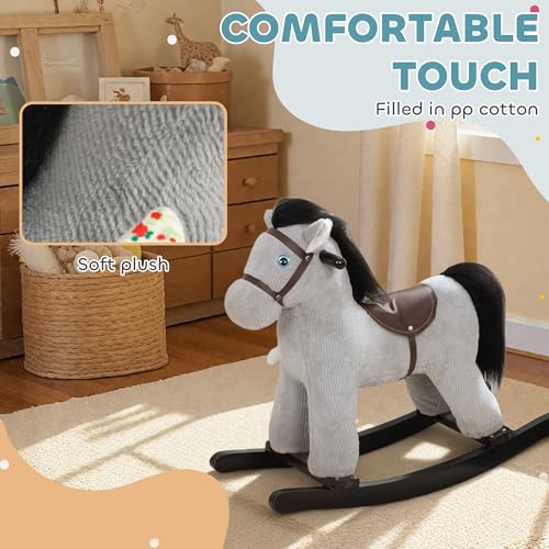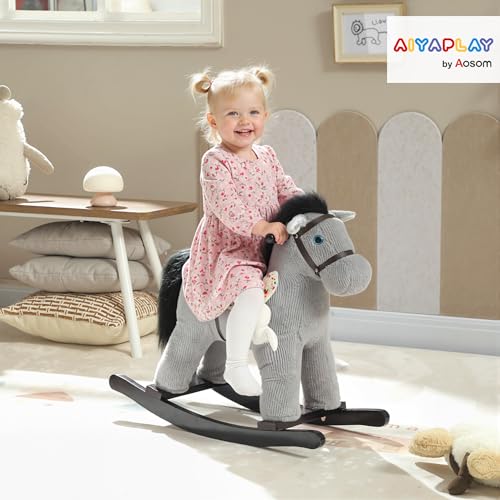 AIYAPLAY Baby Rocking Horse, Plush Ride on Toy with Handle Grip, Sound and Toy, Toddler Animal Rocker for Kids Aged 2-5, Grey