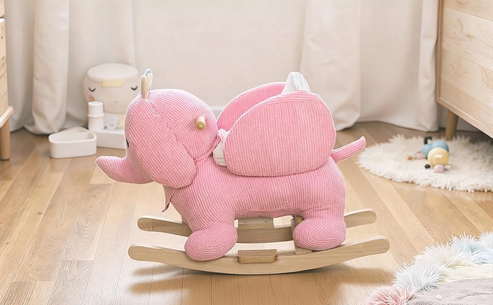 - Cute elephant design with sounds: Delight your little ones with this charming elephant rocking horse, complete with realistic sound effects that inspire imaginative play.