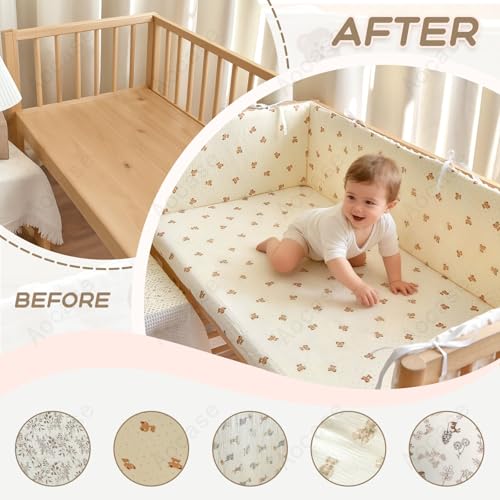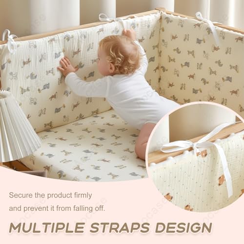 All-in-One Baby Cot Bumper Set, Breathable Adjustable Liner with Padded Side
