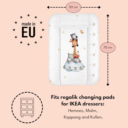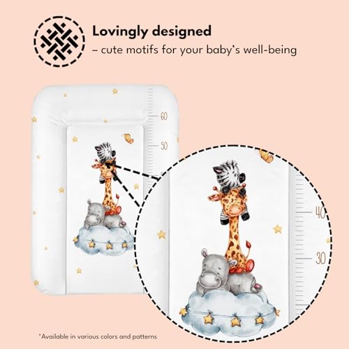 Baby Changing Mat 50×70 cm, White with Safari Animals – Waterproof & Wipe Clean, Soft for Newborns – Changing Table Mat for Dresser – Padded Baby Care ma