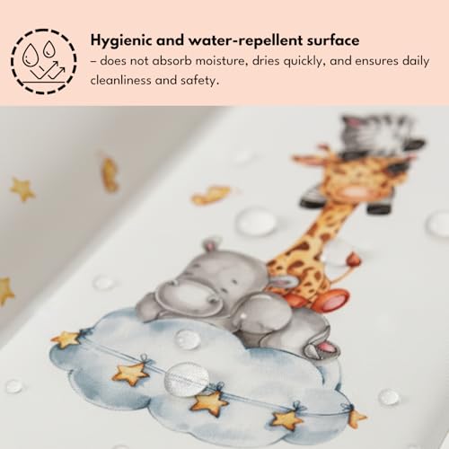 Baby Changing Mat 50×70 cm, White with Safari Animals – Waterproof & Wipe