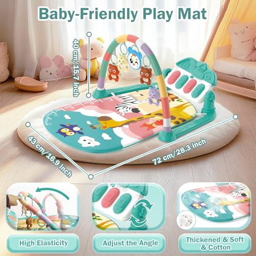 Baby Play Gym Mat 0-6 Months, Baby Activity Mat with Detachable Piano Panel