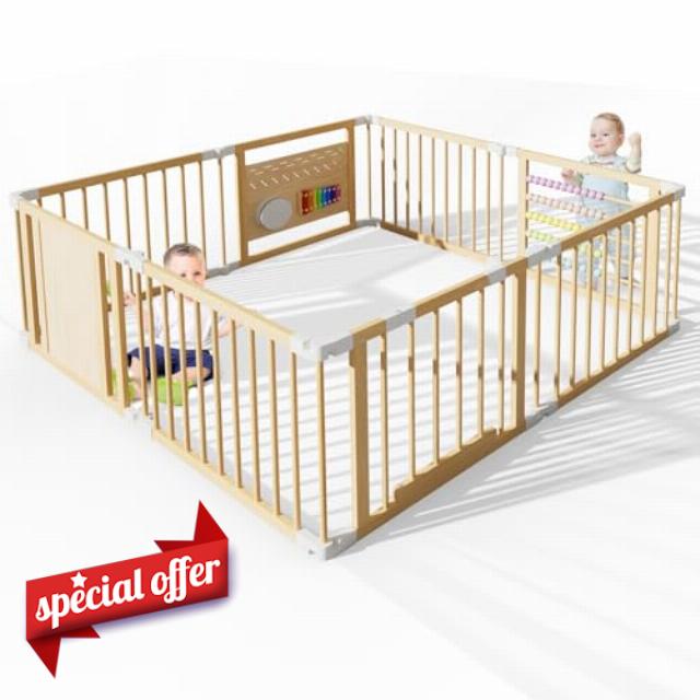 - 【8-Piece Playpen】Produced from pine wood, the children's playpen is the guardian angel for your children or grandchildren. To seamlessly integrate into your living space, it is configurable and adjustable according to your wishes. This way, you always have your little one in sight.