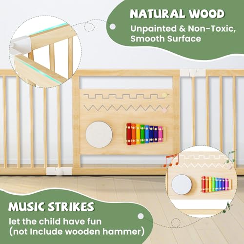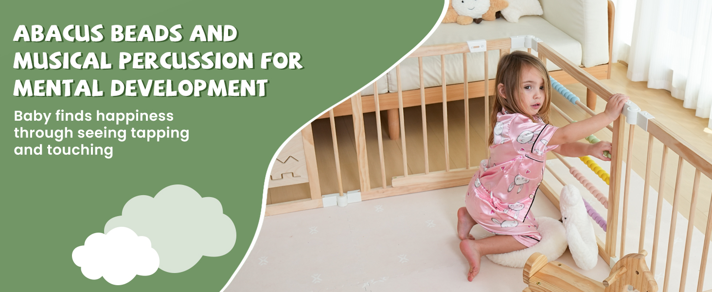 - 【Fun Beads and 】This playpen features uniquely designed, Instrumental toys engage children with music, drawing board and colourful beads that capture your baby's attention and provide a rich visual, hearing and tactile experience. By moving the beads on the baby gate playpen, babies can engage in simple counting activities, Playing an instrument to familiarise yourself with the rhythm, which promotes the development of the baby's brain.