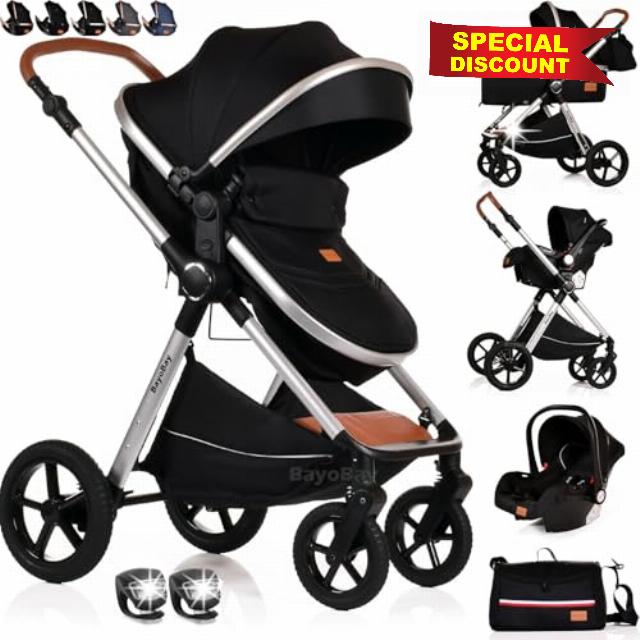 Baby Pram Pushchair Buggy Stroller 3 in 1 with Car Seat Child Lightweight Folding Stroller 3 in 1 Travel System Pram for Newborns Toddlers from Birth New 2026 Style FREEBIES (BBC – Black Silver, BBC)