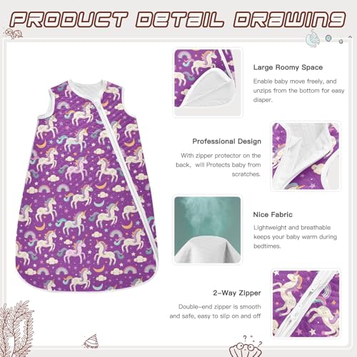 Baby Unisex Newborn Sleep Sack Wearable Blanket Sleeping Bag 0-24 Months S Unicorn Rainbow Clouds