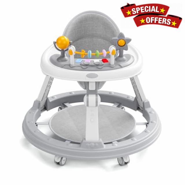 This versatile walker comes with toys for playtime, including music and sounds to keep your baby engaged. The toy can be removed to transform it into a simple dining table. It can be used for learning to walk, strolling, and playing music.