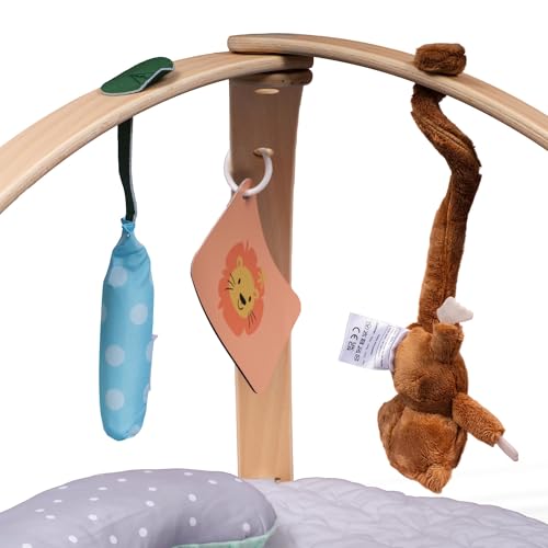 - Engaging Sensory Play: Includes plush, tactile hanging toys, a charming monkey, friendly lion and gentle rattle each designed to stimulate touch, sight, and sound while encouraging early motor skills.