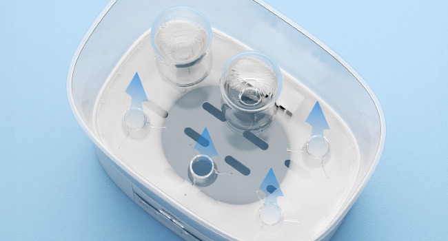 6 pressurised air guide columns make it easy to hold bottles in place and speed up bottle air drying.