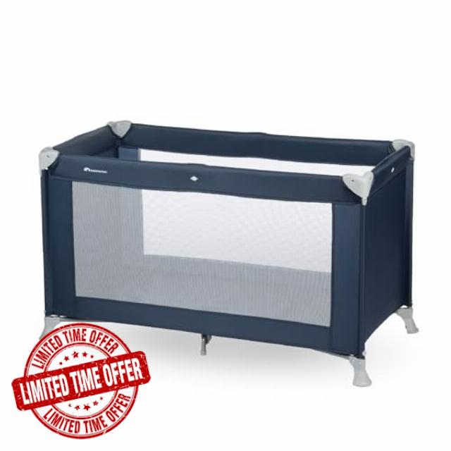 Bebeconfort Soft Dreams Travel Cot, Foldable Children's Travel Cot with Transport Bag, Height Adjustable and Including Mattress, Can be Used from Birth to Approx. 3.5 Years (up to 15 kg), Navy Blue