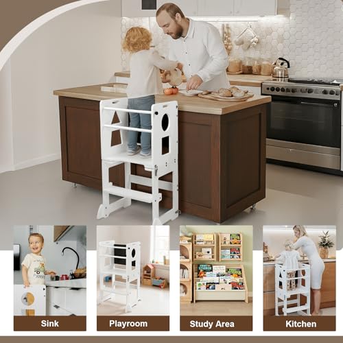 - [Versatile Helper for Home Use]: This kitchen helper stand is ideal for use at the sink, in the kitchen, or as a creative station in the playroom. It empowers toddlers to safely participate in daily activities, fostering independence and bonding with the family.