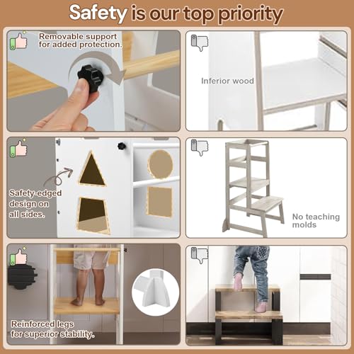 - [Anti-Tip Safety Design]: Equipped with reinforced anti-tip legs on each side, this kitchen helper provides exceptional stability that eliminates tipping risks. Parents can have complete peace of mind while children play and learn safely.
