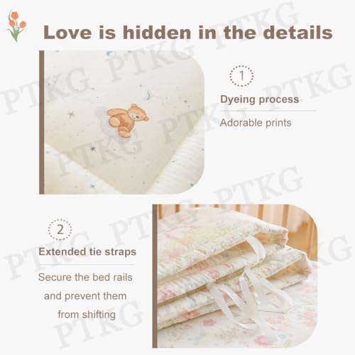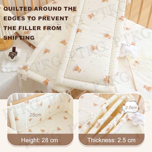 - Premium Materials : This Breathable Crib Cot Liner – also a premium Crib Rail Cover Baby – is crafted from high-density, high-count combed cotton gauze fabric, offering softness, comfort and durability. Filled with high-elasticity, firm cotton inner lining, it delivers excellent resilience. The quilted edges keep the cotton in place, preventing shifting, and its breathable design enhances comfort for daily use.