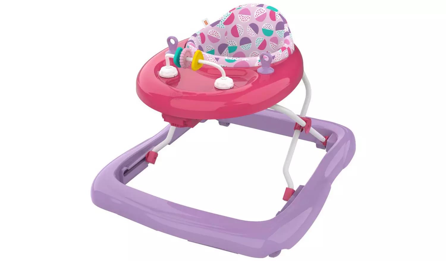 Life’s a party with the Chad Valley Walker! This bright, multi-coloured baby walker helps your little one work toward first steps. It includes a colourful bead chaser to entertain and develop fine motor skills at the same time. With three adjustable heights, the baby’s toes always reach the floor in the correct position as they grow. Its convenient fold-flat design makes travel and storage a breeze. Customise the walker by adding the baby’s favourite toys with the two included link loops! A great gift for baby showers, holidays, and more! Baby walker features: Walker includes a baby activity centre featuring colourful bead chaser with slidable beads to develop fine motor skills; entertains baby as they work toward their first steps! . 3 different height adjustments to grow with baby from 6 to 12 months; encourages independence and safe exploration with parent supervision. The walker folds flat by for convenient storage and travel; easy to clean thanks to machine washable seat pad and wipeable walker frame. 2 link loops are included to attach baby’s favourite toys for additional entertainment while they build motor skills; high quality and affordable walker built to last. No batteries are required to use this walker; multi-coloured walker is great for gifting occasions, from baby showers to birthdays; use on flat surfaces only (not near stairs). Back support for baby’s comfort. 3 height positions. Size H49.5, W71, D64cm. Folds for storage. Folded Height 48cm. Weight 3.4kg. Suitable for babies up to 12kg. For ages 6 months and over. WARNING(S): This product is intended for children who are able to sit up unaided, until they are able to walk themselves. Only for domestic use. To be used under the direct supervision of an adult. This toy does not provide protection. Prevent access to stairs, step and uneven surfaces. This product has been tested and certified to comply with European Safety Standard BS EN 1273:2020.