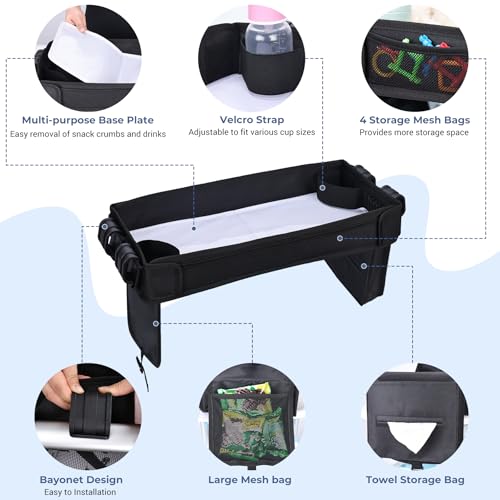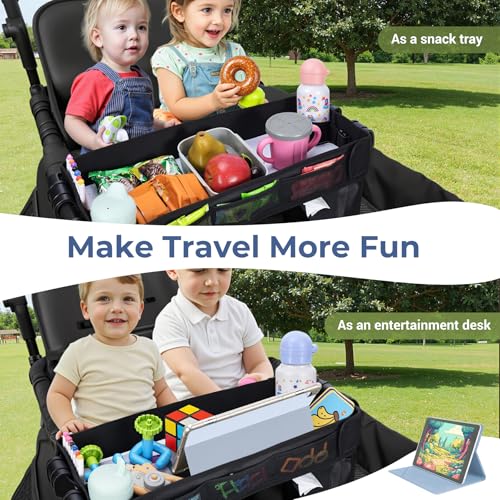 - Multi-functional Kids Snacks & Activities Tray: This innovative wagon stroller snack tray features a multi-functional base that double as a stroller caddy and a convenient drawing tray. Simply insert a pre-printed patterned sheet of paper into the base plate, and your child can trace the design to practice drawing skills. The surface is easy to clean, making it a reusable drawing board. Keeping creativity within reach and making outings more fun.