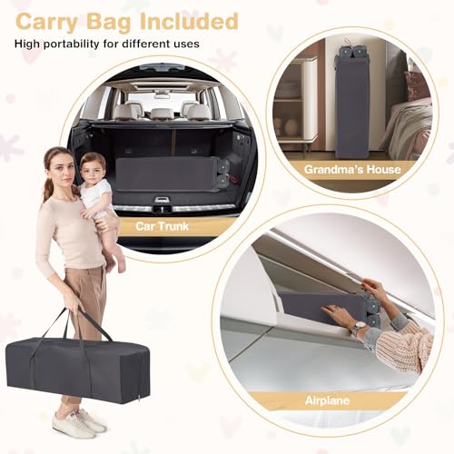 - 【Travel-Friendly Design】 This baby playard provides easy setup without tools: keep the bed standing vertically; open the short armrests of bed; open the long armrests of bed; press down the bottom. The carry bag is also included. High portability makes it suitable for different uses, such as visiting grandma’s house, placing in the car trunk or taking on the airplane.