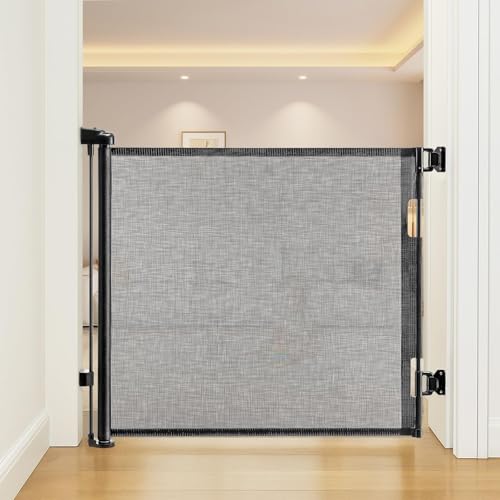 - Versatile: Retractable baby gate extends up to 140 cm wide and stands 83.8 cm tall, suitable for stairs, doorways, hallways, and outdoor use.