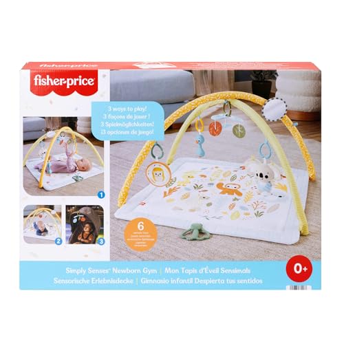 Fisher-Price Baby Playmat Simply Senses Newborn Gym with Mobile & Sensory Activity Toys for Developmental Play Ages 0+ Months, JMN74