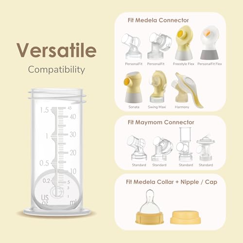 - 45mL collection bottles are with leak proof lids. Easy to read 0-5mL small marks so you know exactly how much colostrum you have produced.