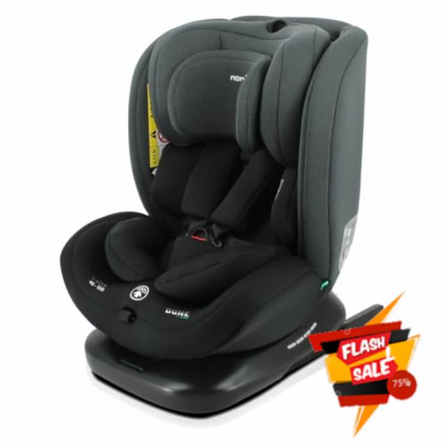 EVOLUTIVE CAR SEAT 40-150 cm – GROUP 0+, 1, 2, 3: baby car seat from birth in rearward position with reducer cushion and pillow for newborn (0 – 4 years) and child car seat in facing position (15 months – 12 years) New I-SIZE standard: The car seat Children’s Dune East Equipped with ISOFIX connectors, meeting the highest i-Size safety standard (R129/04), and a Top Tether attachment system for maximum safety and a stable fit in the car. A PROLONGED POSITION BACKON ON THE ROAD: Allows you to keep your child back to the road for longer, as recommended by child safety experts – up to 105 cm. QUICK INSTALLATION: This car seat is equipped with ISOFIX and TOP TETHER system, with indicators to ensure proper installation, which improves its safety and stability while reducing the risk of fixing errors. 360 ROTATING CAR SEAT: nania 360 swivel car seat simplifies the switch from rear-facing mode to facing the road – rotate facing the car door for easy access to baby, and smoothly switch to rear-facing mode DOUBLE SIDE IMPACT PROTECTION: This car seat ensures your child’s safety for 12 years thanks to the double Side impact protection that reduces the risk of damage to the head, neck and shoulders. INCLINATION: the ISOFIX 360 car seat offers a large inclination, 3 rear-facing and 3 facing the road, to ensure your child’s comfort Adjustable headrest: it offers one-handed adjustment of 10 headrest positions and a harness 5 points that are Can be adjusted simultaneously; as your baby grows, the reducing cushion can be removed. Comfort: memory foam cover for the headrest and head pillow, optimising the comfort of infants. It includes a removable cushion that decreases the depth and provides lumbar support, ideal for babies between 40 and 87 cm tall. MACHINE WASHABLE COVER: simply remove it from the swivel seat and machine wash at a maximum temperature of 30°C