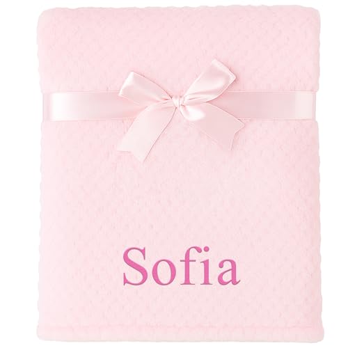 Personalised Elephant Comforter & Waffle Blanket Gift Set – Embroidered with Any Name – Pink, Blue or White Baby Bundle (Pink Waffle and Pink Elephant Comforter)