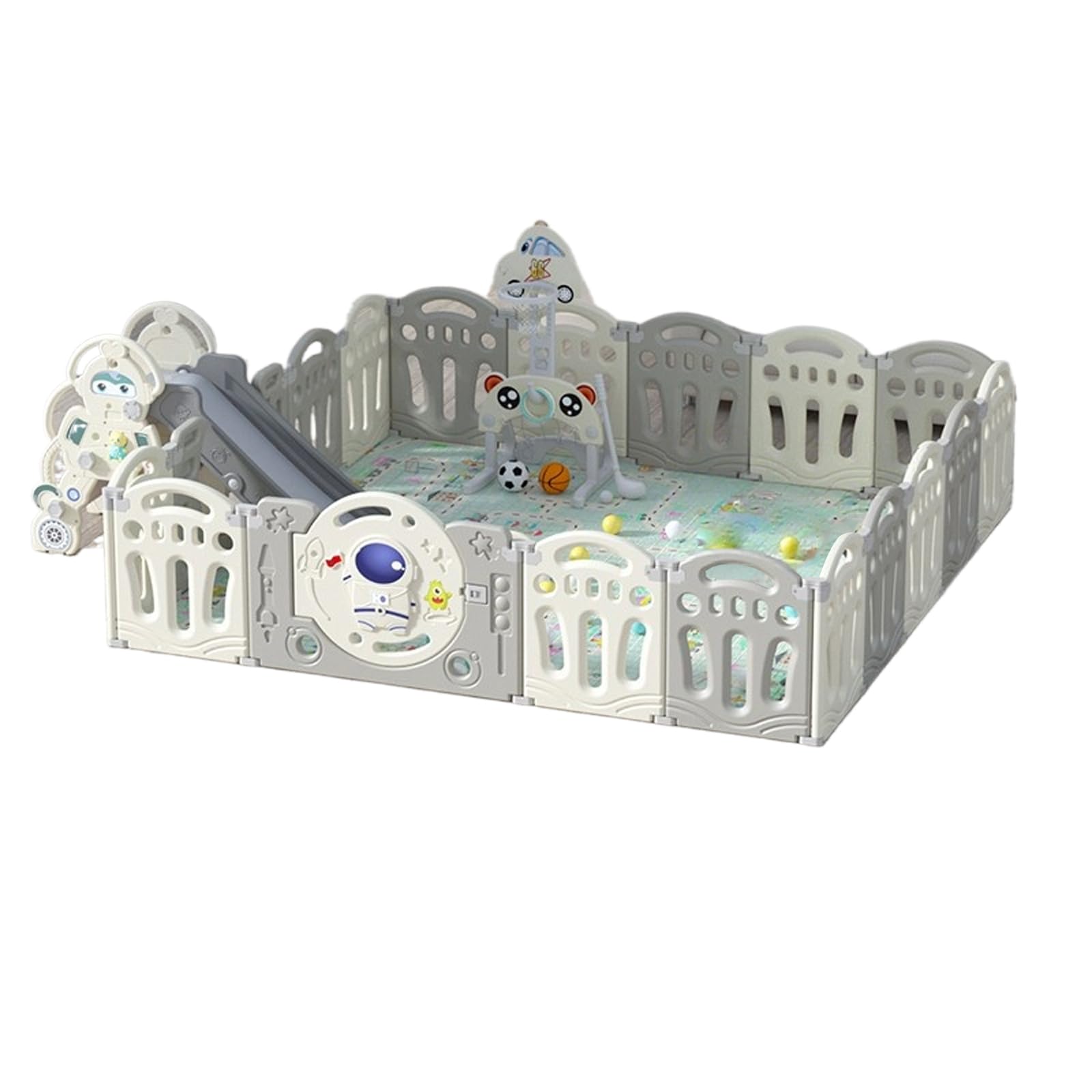 - 【Package Details】 Fence×16, Door Panel×1, Game Board×1, Crawling Mat×1, Colorful Balls×100, Slide×1, Basketball Hoop×1. (Refer to the second image for details in the detail page)